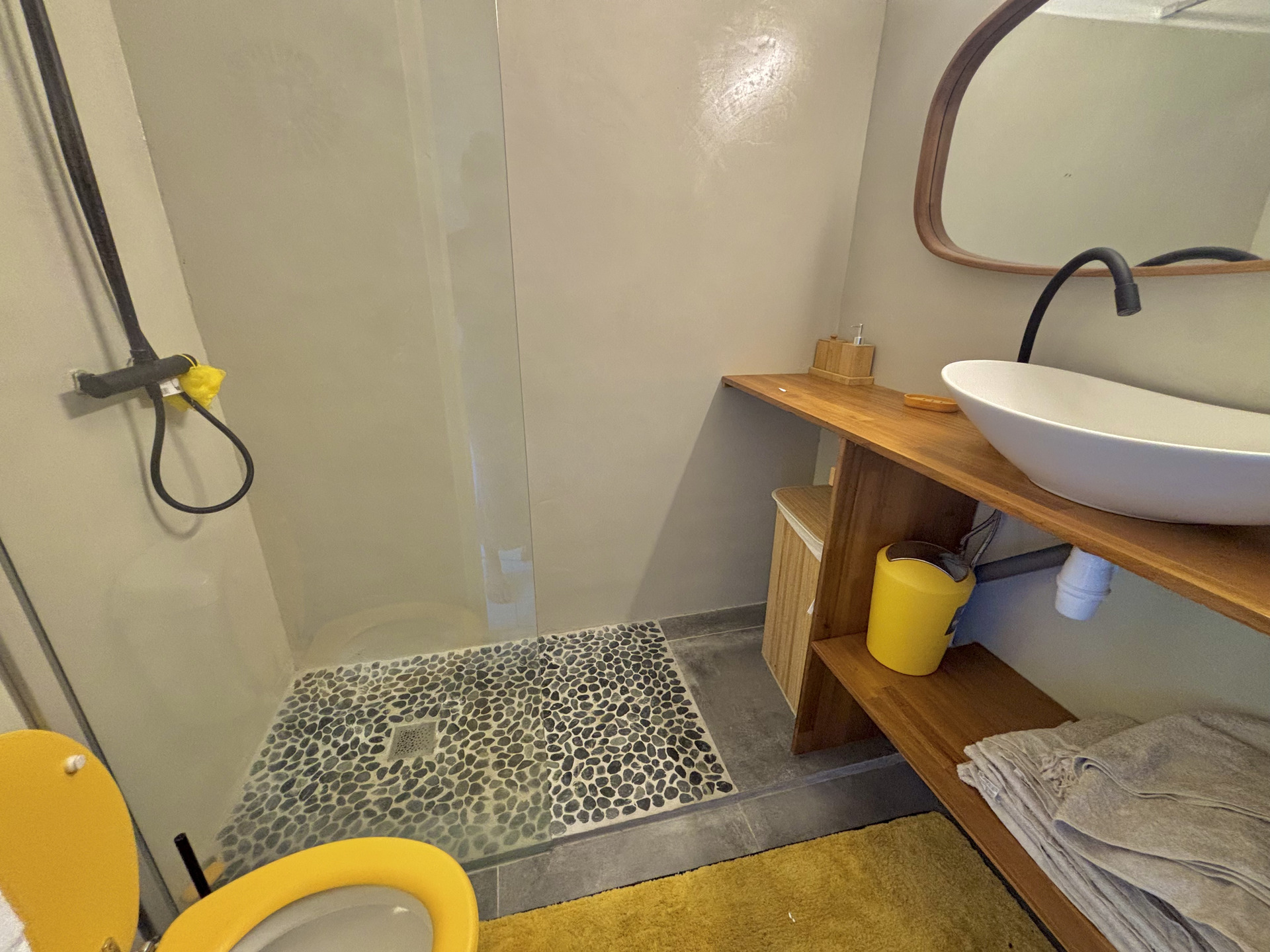 Ce bien se compose d’une pièce principale avec coin nuit, d’une cuisine indépendante entièrement équipée, ainsi que d’une salle d’eau avec WC. L’atout majeur de ce logement réside dans sa spacieuse terrasse aménagée. Elle accueille une seconde cuisine extérieure, idéale pour les repas conviviaux en plein air.